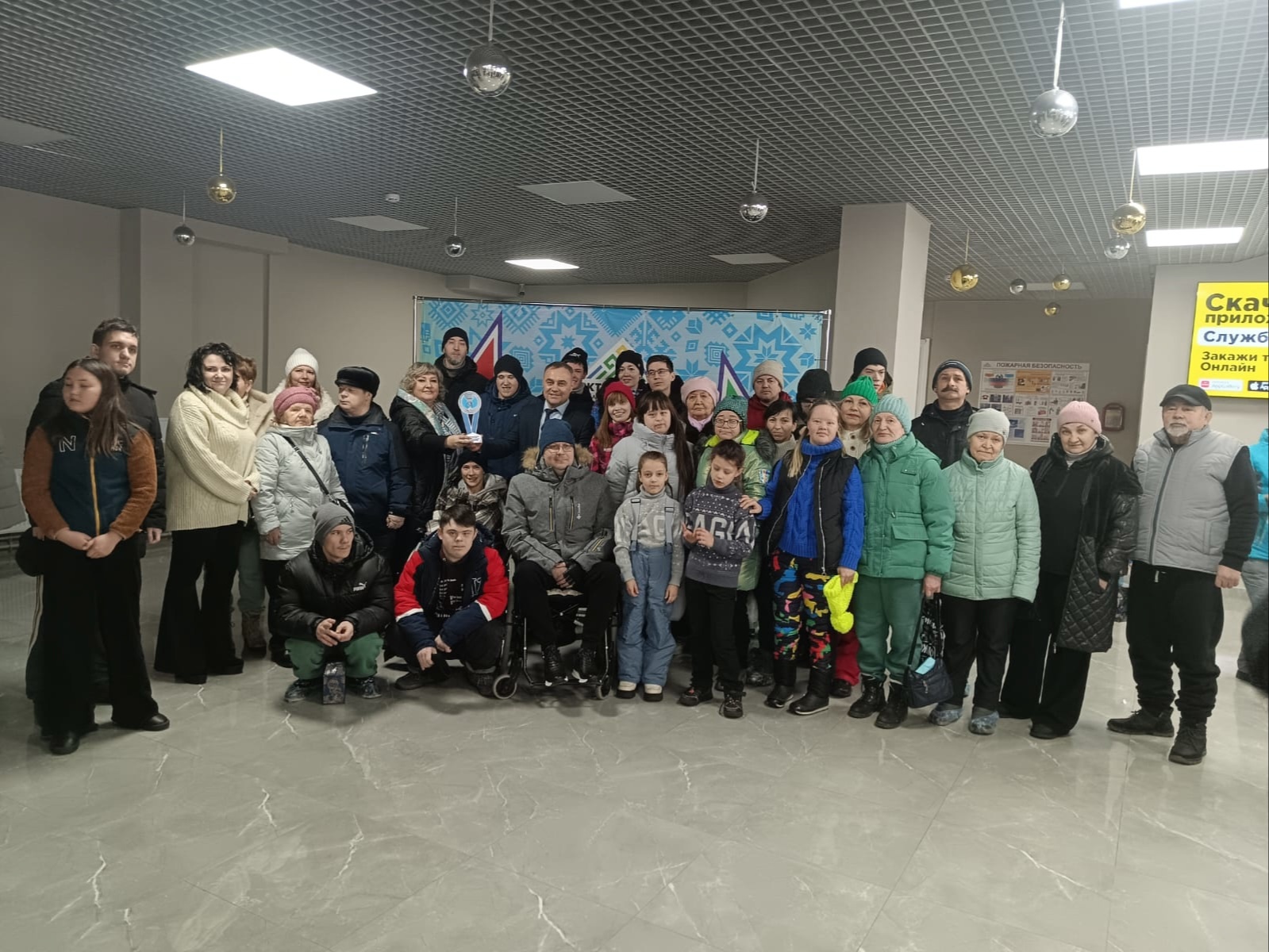Участники Октябрьской городской организации БРО ВОИ из центра "Без барьеров" на праздновании 1 года Ледового дворца!