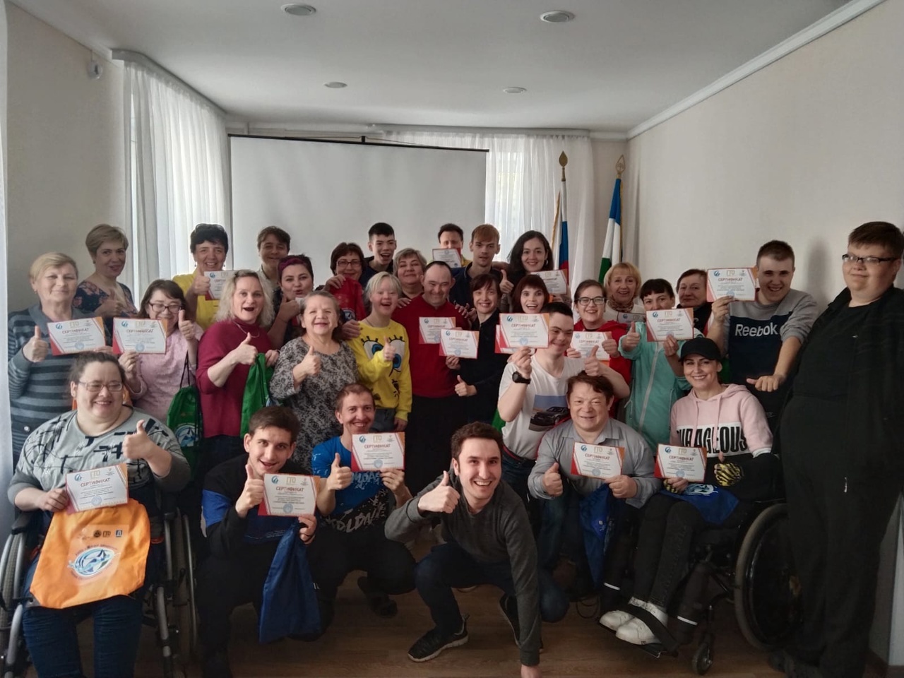Фестиваль ГТО для людей с ОВЗ "Главная победа - победа над собой" прошел 13 мая во дворце спорта города Октябрьский. Этот фестиваль проходил при поддержке Фонда президентских грантов, выигранный Мариной Александровной Плехановой, руководителем организации «Живи здоровым»! Проект направлен на подготовку людей с ограниченными возможностями здоровья и к выполнению нормативов ВФСК «Готов к труду и обороне». Участники Октябрьской городской организации БРО ВОИ активно приняли участие в этом фестивале, а сегодня в центре "Без барьеров" прошло награждение участников и вручение им сертификатов и памятных подарков.