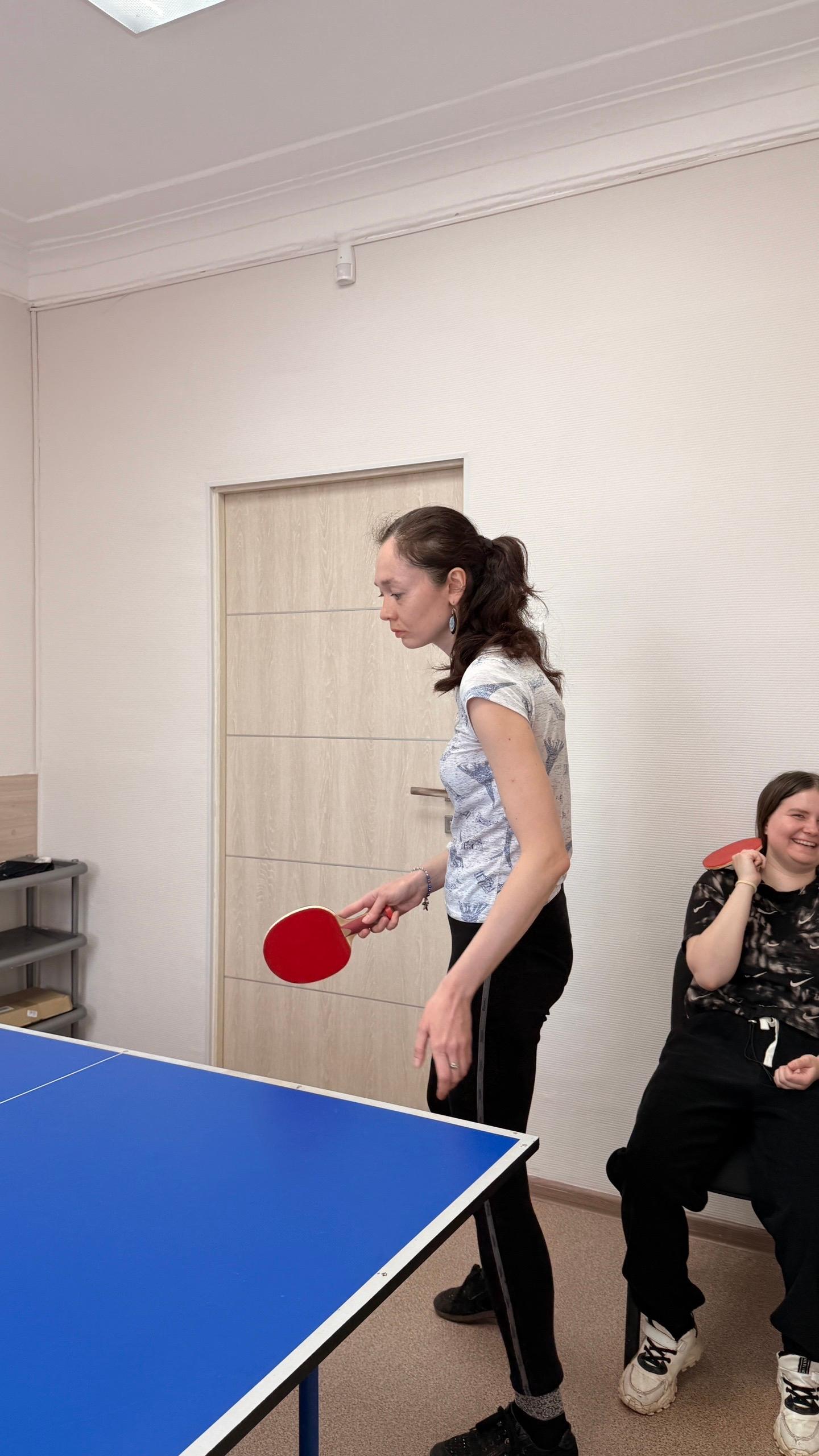 За теннисными столами шла настоящая битва: оттачивание подач, набивка ракеткой и упорная работа над отбивающими.