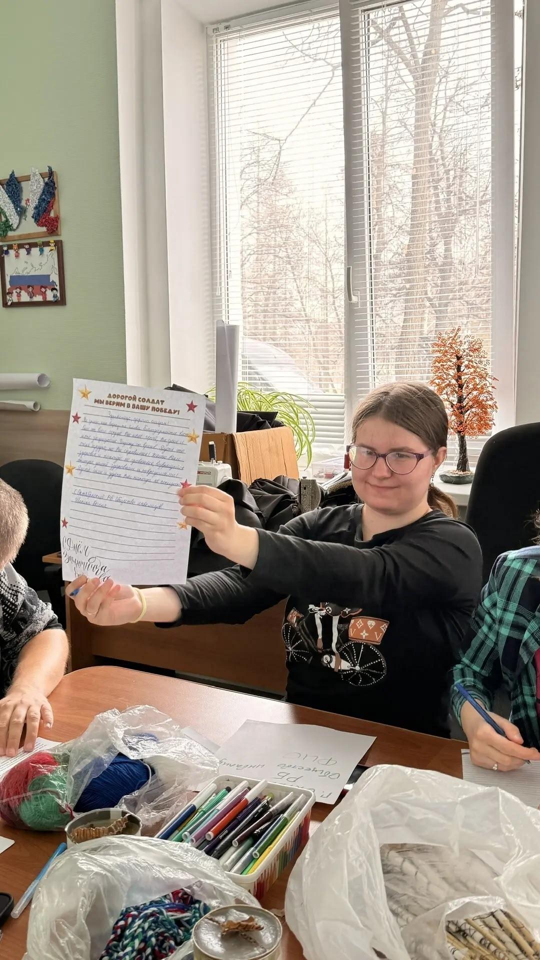 Регина — настоящий боец тыла! Она помогает нашим ребятам на СВО: изготавливает окопные свечи, пишет письма защитникам, собирает и отправляет гуманитарную помощь. Сегодня мы все вместе писали письма нашим бойцам с надеждой и верой в сердце. С верой, что каждый из них обязательно вернётся домой, где его ждут родные и близкие. ️